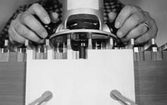Just a single pass of the dovetail bit cuts each dovetail socket completely.